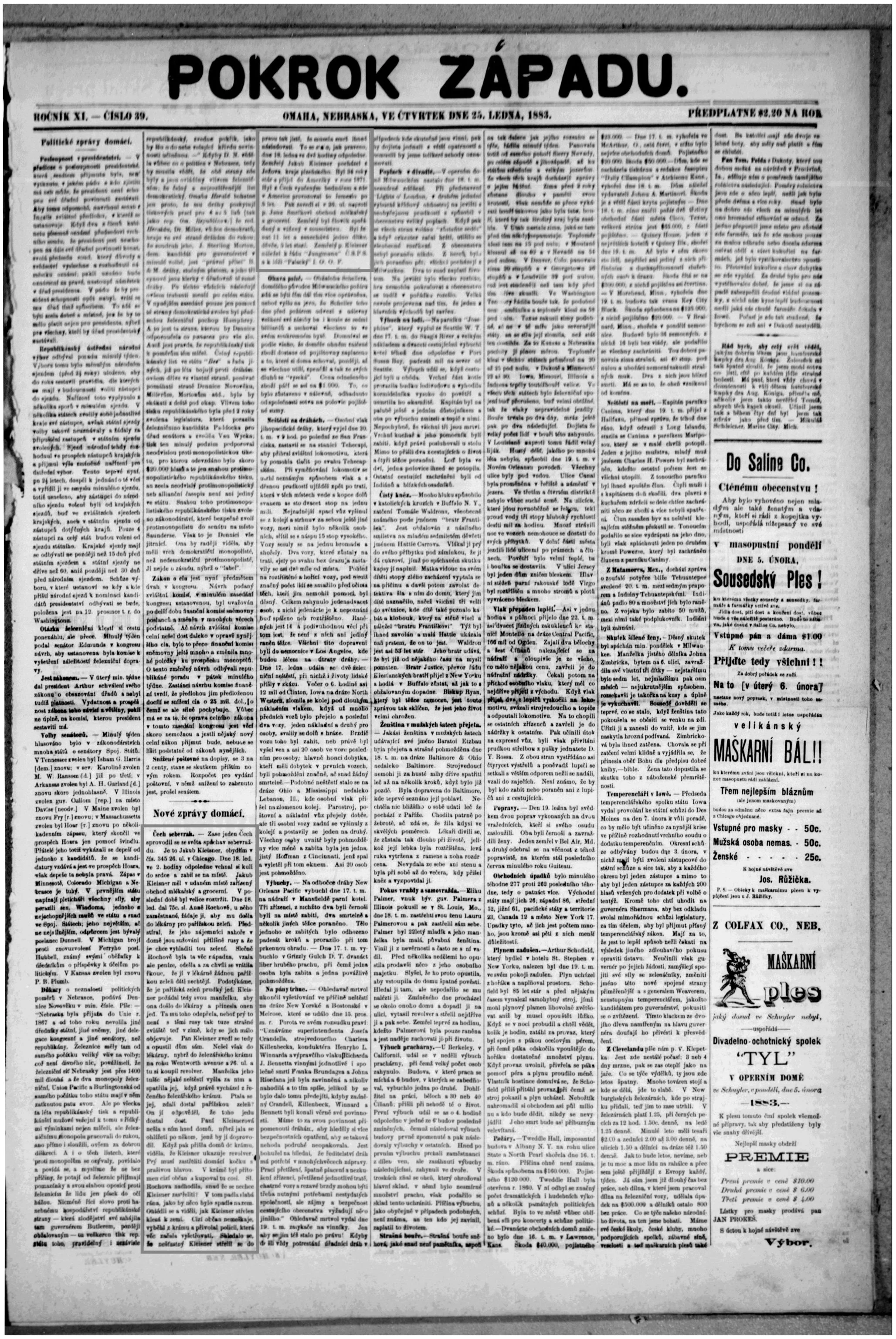 OldNews.com, https://www.oldnews.com/cs/record?record_id=record-12010-456733837. Pokrok Západu, Omaha, Nebraska, 25 Jan 1883, page 1 : downloaded 15 Feb 2026.